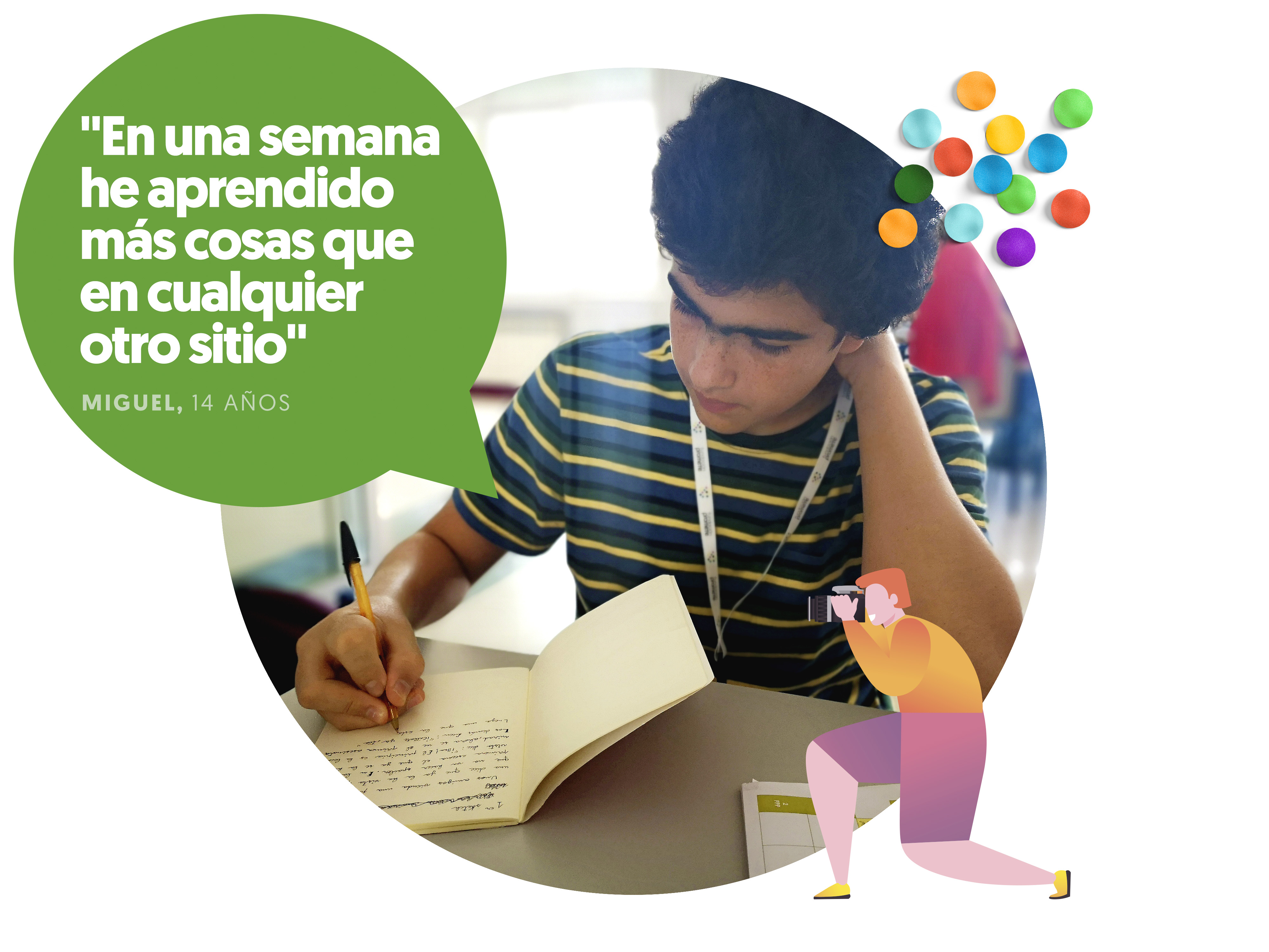 5 días donde participantes entre 8 y 18 años, realizan un proyecto personal publicable, acompañados de forma personalizada por un equipo educativo de coaches y profesionales de cada área.